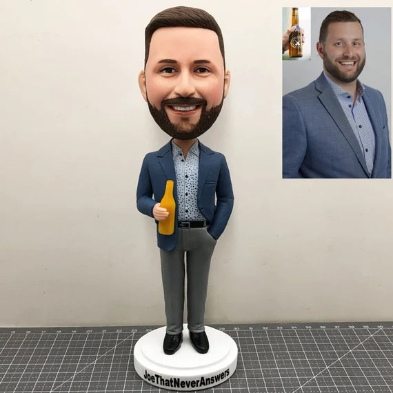 Unsere Standard-Wackelköpfe sind etwa 15–26 cm groß und eignen sich daher perfekt zur Präsentation auf Schreibtischen, in Bücherregalen oder als Dekoration im Auto.